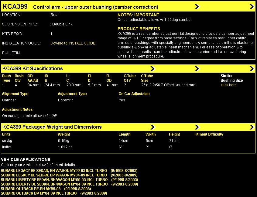 Top » Catalog » * ALL | SUBARU » OUTBACK » (00-04) - BH » SUSPENSION / BRAKES » KCA399 My Account  |  Cart Contents  |  Checkout